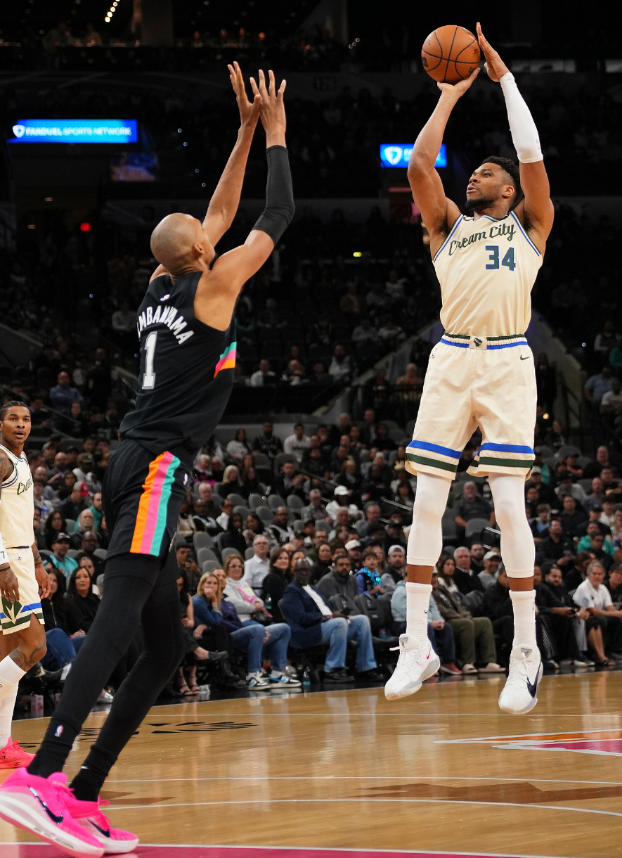 次节开场雄鹿打出一波7-0反超马刺,文班亚马立马连拿4分,随后文班亚马连续命中两个三分球,单节11分6篮板1盖帽帮助马刺打出小高潮,半场打完马刺已经三人上双。扬尼斯次节只拿到2分,半场16分3篮板。